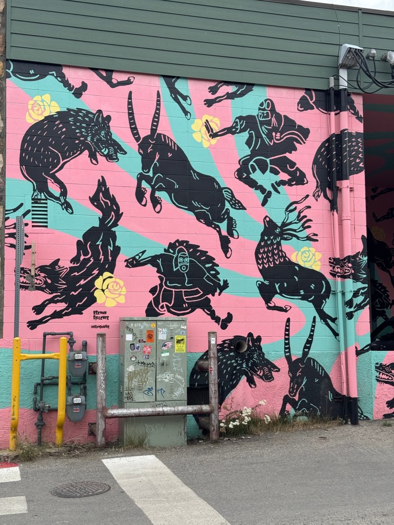 Pludselig så vi blåst ét sted. ‘Blåst’ er, når hvaler puster luft op i luften. Så et andet sted. Pludselig en grå rygfinne og ryggen af noget gråt, der gled på en rolig og nærmest underspillet måde gennem vandet, og vi vidste, at noget stort gemte sig lige under overfladen. Blåst igen. Og igen, men længere væk. En stemme over færgens højtaler sagde, at vi havde set ‘humpback whales’, altså pukkelhvaler. Wauw.