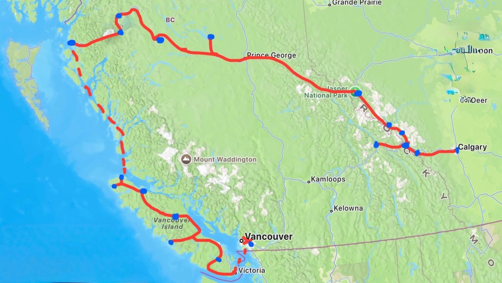 Pludselig var turen slut, og vi kørte fra borde – nu på Vancouver Island. Et eventyr ventede på os, så meget vidste vi. Men først måtte vi overgive os til søvnens blide favntag, som vi gladeligt lod os vugge til ro.